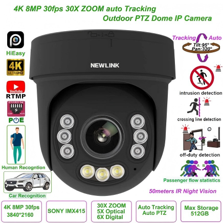 | Humanoid detection | Support Humanoid detection record,snapshot,alarm ouput,tracking |